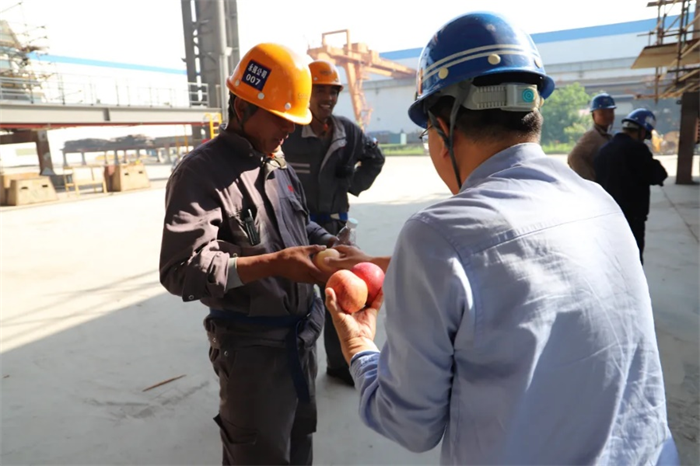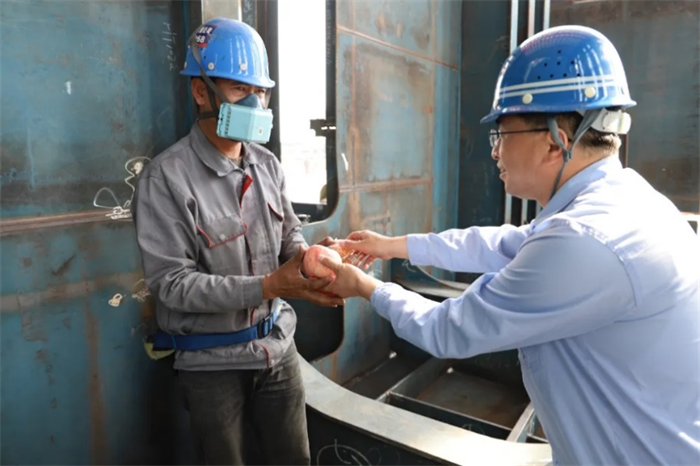 自大干二季度的號角響起,廣大蕪船人加壓奮進、只爭朝夕、大干特干在生產(chǎn)線上譜寫奮斗的贊歌。值此國際勞動節(jié)之際,公司黨委組織開展“五一”慰問送關(guān)懷活動,向節(jié)假日堅守崗位,為百億級目標(biāo)連續(xù)作戰(zhàn)奮斗的一線造船人送去暖心的慰問和鼓舞。