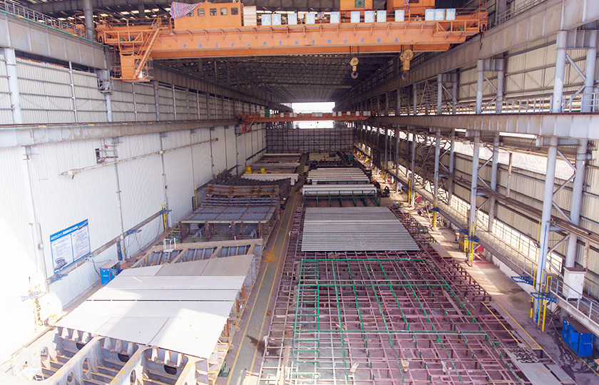生產(chǎn)車間面積22.56萬(wàn)平方米。公司注重制造車間硬件設(shè)備方面的投入。船體制造擁有一條先進(jìn)的鋼材及型材預(yù)處理生產(chǎn)線,數(shù)臺(tái)數(shù)控等離子切割機(jī)、三輥對(duì)稱液壓卷板機(jī)、油壓機(jī)、1000T移動(dòng)回轉(zhuǎn)壓頭框式液壓機(jī)、程控肋骨冷彎?rùn)C(jī)。管舾裝制造設(shè)施擁有五軸數(shù)控相貫線切割機(jī)、數(shù)控相貫線切割機(jī)和數(shù)臺(tái)先進(jìn)的切割和彎管設(shè)備。涂裝設(shè)施能同時(shí)完成3噴14涂分段涂裝能力。